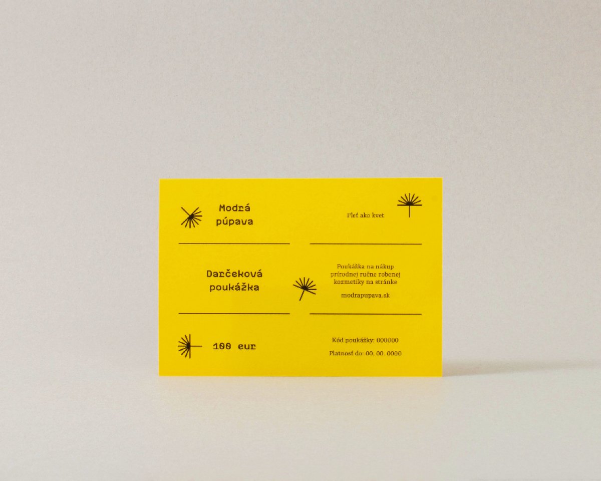 Poukaz v hodnote 100 Eur na nákup prírodnej kozmetiky na stránke modrapupava.sk. Dostupný v elektronickej podobe.