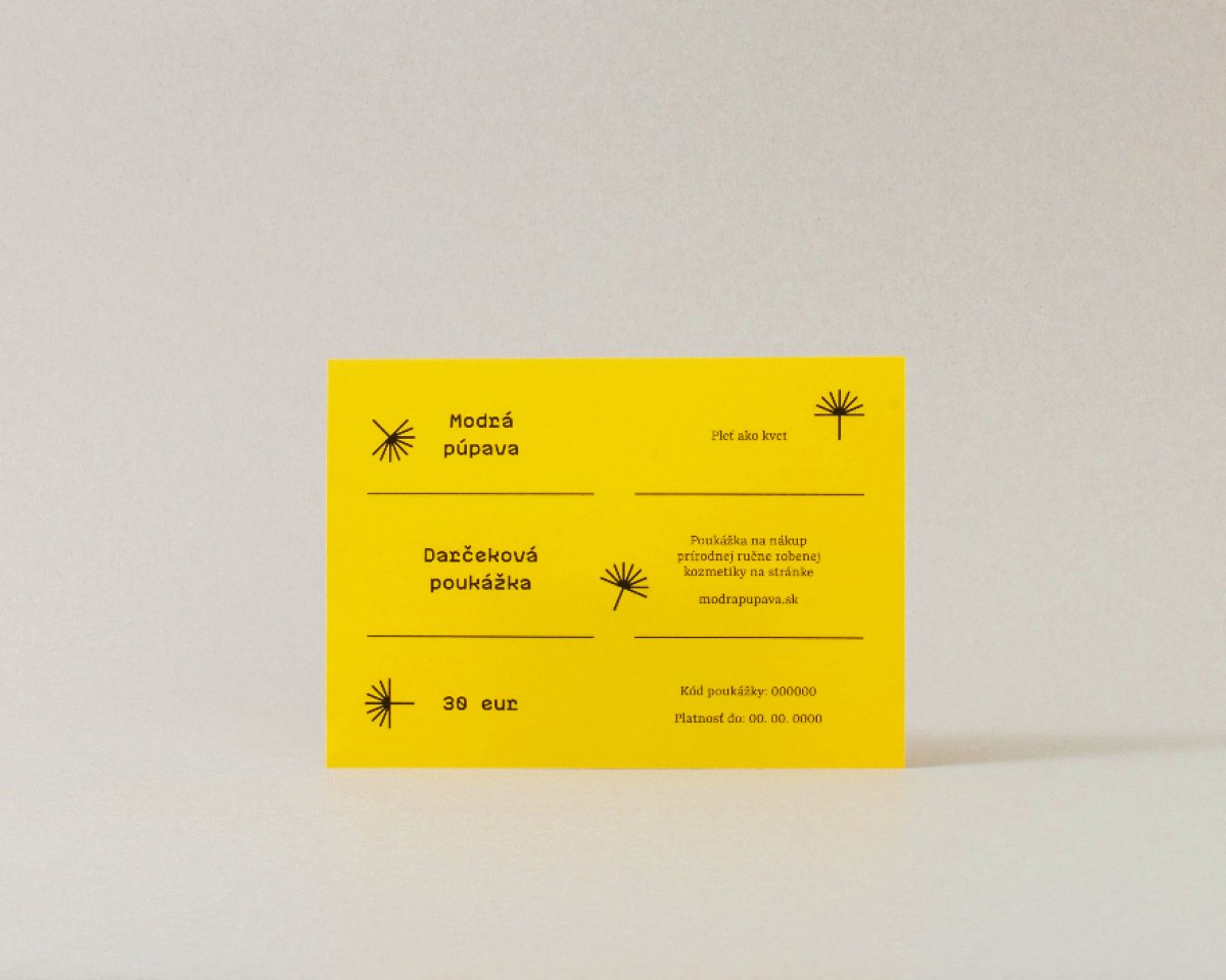 Poukaz v hodnote 30 Eur na nákup prírodnej kozmetiky na stránke modrapupava.sk. Dostupný v elektronickej podobe.