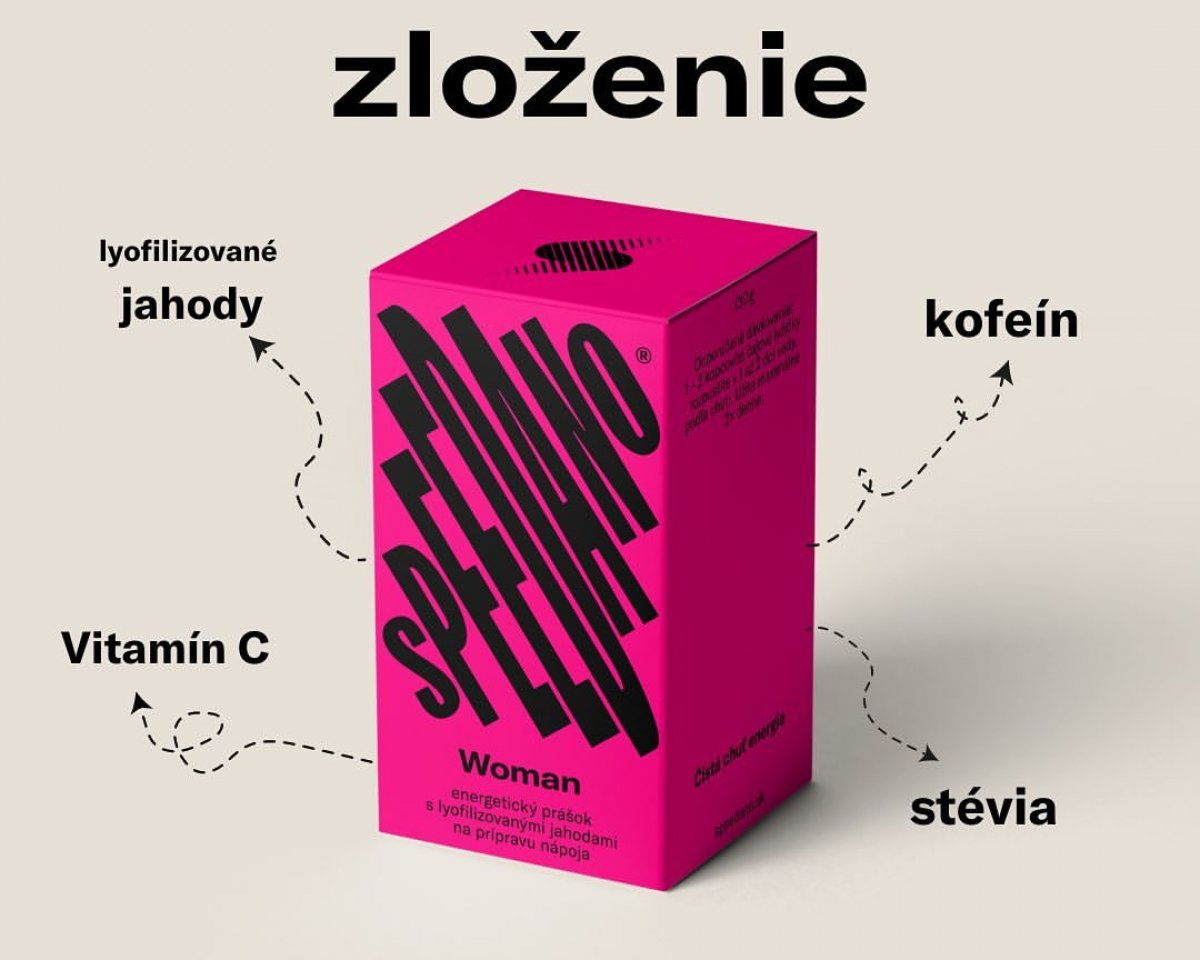 Zloženie sme zostavili tak, aby vám okrem prívalu energie priniesol i chuťový zážitok, a to všetko bez syntetických príchutí. Pravú jahodovú chuť sme dosiahli tým najprirodzenejším dostupným prostriedkom - jahodami. V každom dúšku SPEEDANO® Woman sú spolu s účinnými látkami zmiešané lyofilizované jahody najlepšej chuti. A aby toho nebolo málo, tak sme pridali vitamín C, ktorý okrem príjemnej kyselkavej chuti pôsobí ako silný antioxidant.